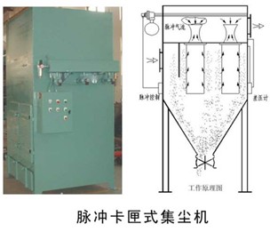 工作原理: 含塵氣體由進(jìn)風(fēng)管進(jìn)入除塵器,經(jīng)擋板將風(fēng)俗變慢,其中比重較重的粉塵直接落入收灰倉內(nèi),緩解氣體對濾袋的損壞,含塵氣體再經(jīng)過濾袋過濾后的凈化后經(jīng)文丘里管由出口排出,粉塵附在濾袋上,形成粉餅。清灰時(shí)由脈沖控制儀順序觸發(fā)各控制閥開啟脈沖閥,氣包內(nèi)的壓縮空氣經(jīng)脈沖閥至噴吹管的各孔噴出經(jīng)文丘里管進(jìn)入濾袋,濾袋瞬間急劇膨脹,使積附在濾袋表面的粉塵脫落。清洗啊粉塵落入灰門。由此使積附在濾袋上的粉塵周期地脈沖噴吹清灰,保證系統(tǒng)運(yùn)行正常。 特點(diǎn): 除塵效率可達(dá)99.9%以上 結(jié)構(gòu)簡單,阻力低 處理風(fēng)量大,性能穩(wěn)定 操作維護(hù)簡單,方便 濾袋使用壽命長